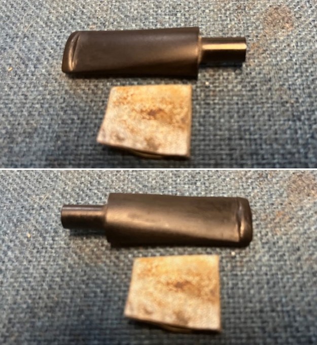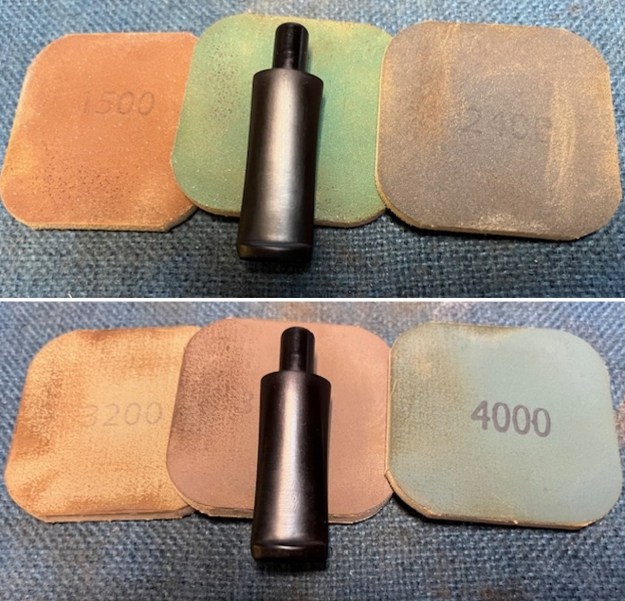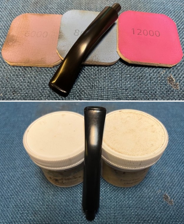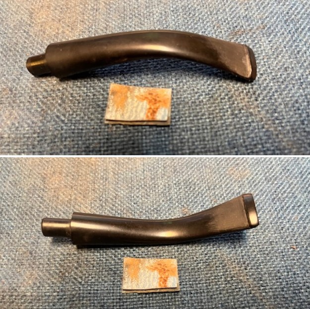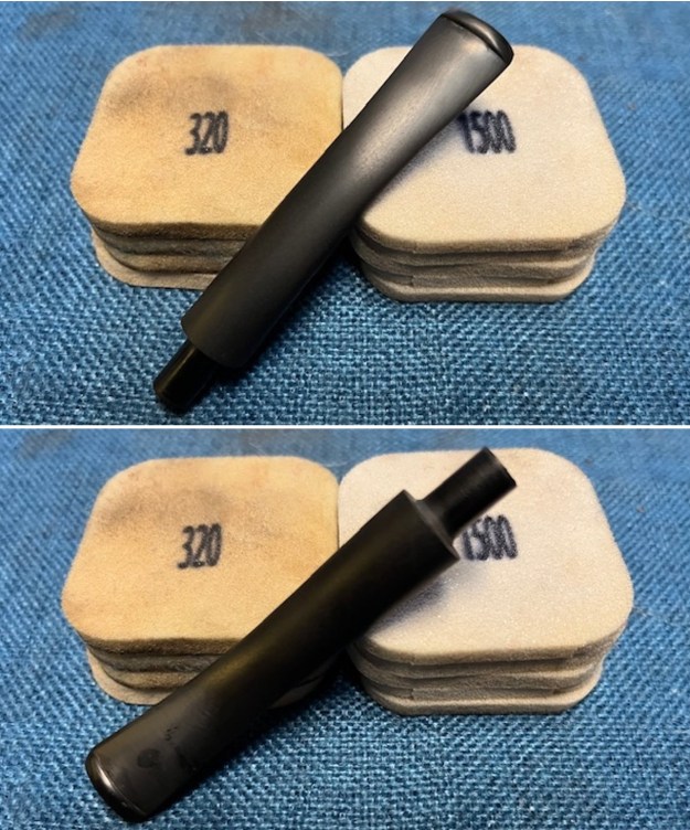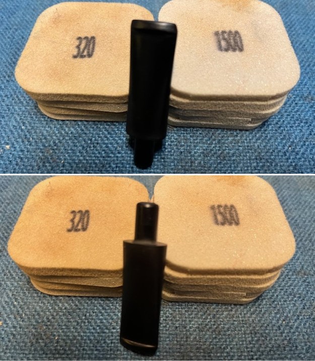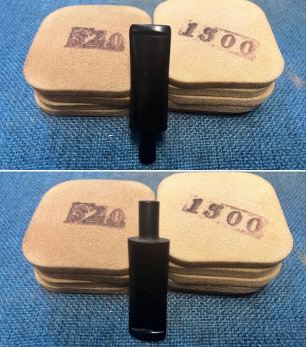 I turned to the stem to address the issues on the surface of both sides at the button. I sanded the stem with 320-3500 grit sanding pads. I wiped the stem down with an Obsidian Oil cloth after each sanding pad. I think I finally beat the oxidation.