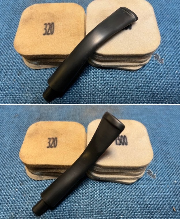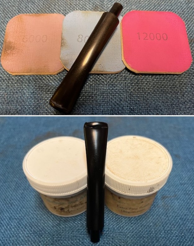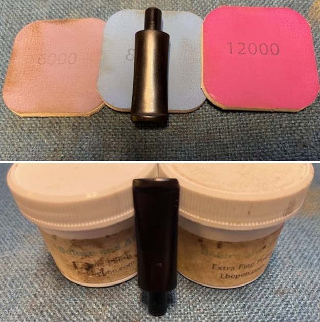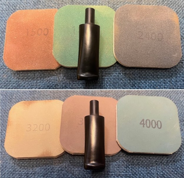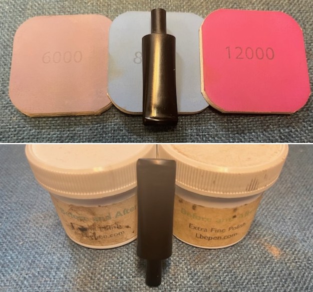 I polished the stem with micromesh sanding pads – wet sanding with 1500-12000 grit sanding pads. I wiped it down after each sanding pad Obsidian Oil. I finished by polishing it with Before & After Pipe Stem Polish both fine and extra Fine and then wiped it down with a final coat of Obsidian Oil.