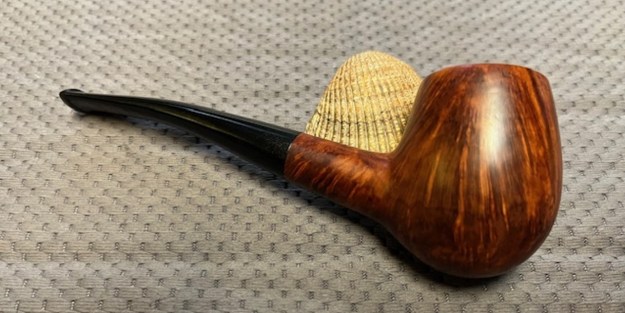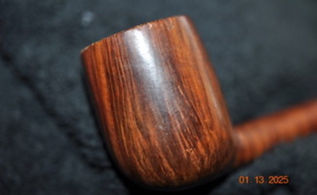 This is a beautiful Malaga M-2 Bent Acorn with a vulcanite tapered stem. It has a great look and feel. The shape of the bowl, the rim top and the cut of the briar work well to highlight the grain around the bowl sides. I polished stem and the bowl with Blue Diamond polish on the buffing wheel. I gave the bowl and the stem multiple coats of carnauba wax. I buffed the pipe with a clean buffing pad to raise the shine. I hand buffed it with a microfiber cloth to deepen the shine. The pipe polished up pretty nicely. The grain took on life with the buffing. The rich oil cured colour works well with the polished vulcanite stem. The finished Malaga M-2 Acorn has a rich look that is quite catching. The repaired flaws look better and are smooth. Have a look at it with the photos below. The shape, finish and flow of the pipe and stem are very well done. The dimensions are Length: 5 ½ inches, Height: 1 ¾ inches, Outside diameter of the bowl: 1 1/8 inches, Chamber diameter: ¾ of an inch. The weight of the pipe is 1.23 ounces/35 grams. It is a beautiful pipe. I will be putting it on the rebornpipes store shortly in the American Pipemakers Section if you are interested in adding it to your collection. Thanks for walking with me through the restoration.