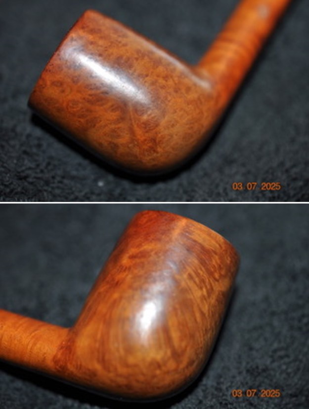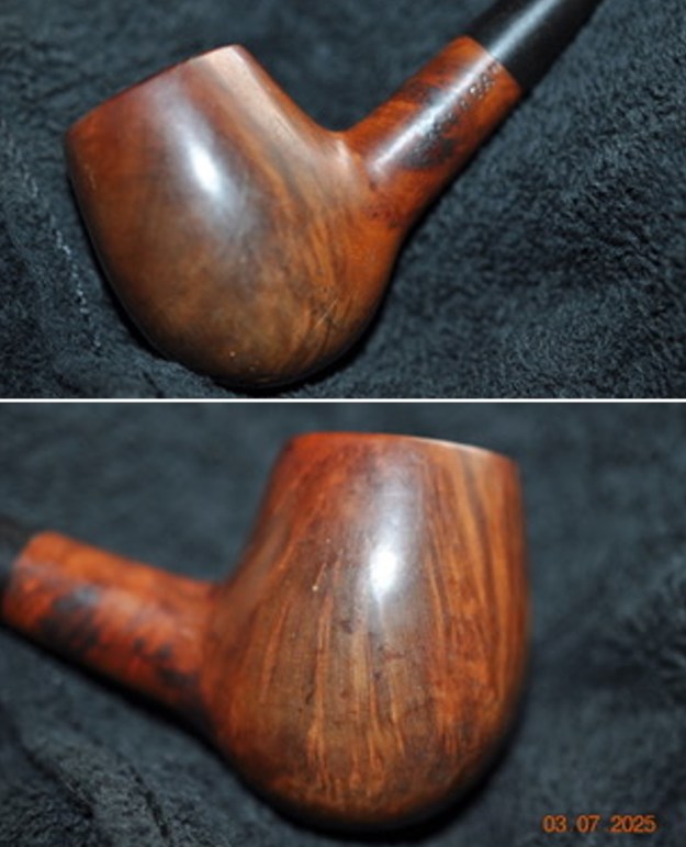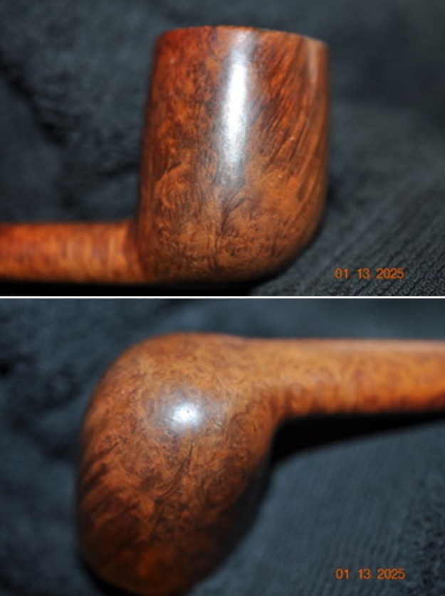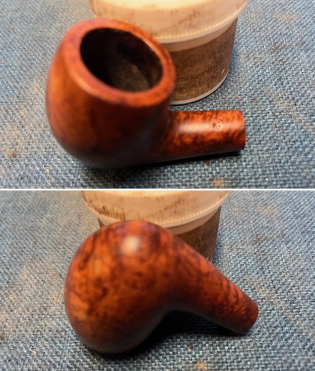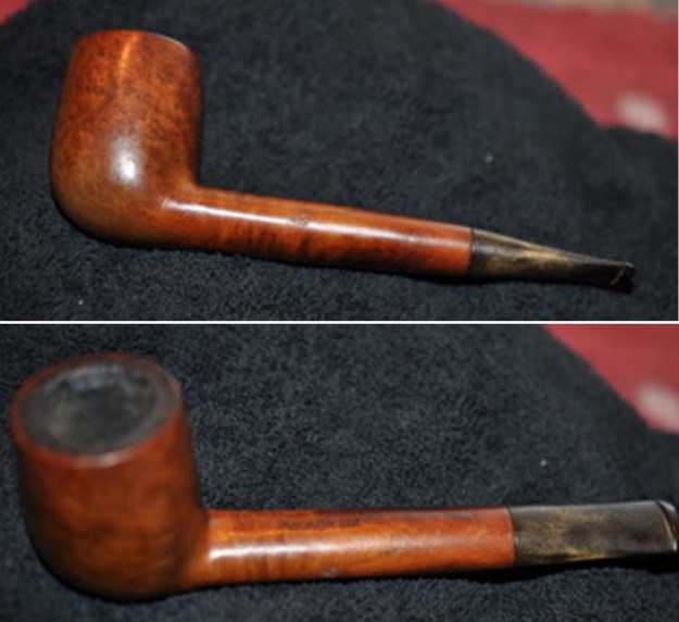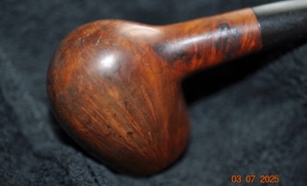 He also took a photo of the side and bottom of the bowl and shank to show the beautiful grain around the bowl. The photos show the general condition of the bowl and dirt and wear on the rich oil finish. You can also see the flaws in the briar which explains the M-2, or second designation. It is very dirty but this is another beautiful pipe.