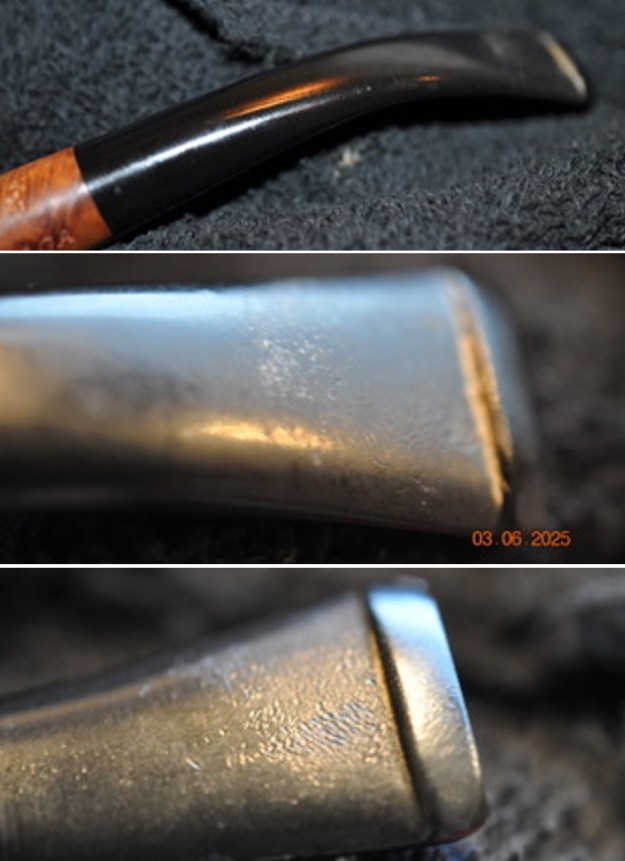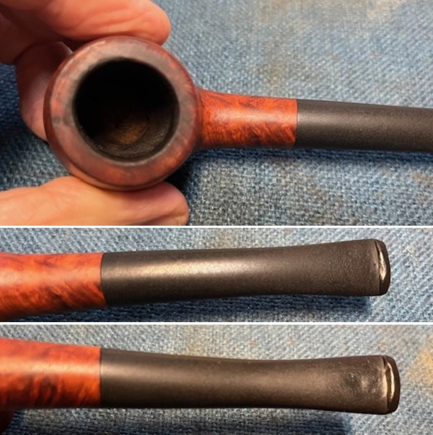 I took close up photos of the bowl and rim top as well as the stem. You can see the condition of the rim top and bowl in the first photo. Jeff was able to remove all of the tar and oils and you can that the top and the edges of the bowl look very good. The stem had light tooth marks and chatter on both sides near the button on both sides.