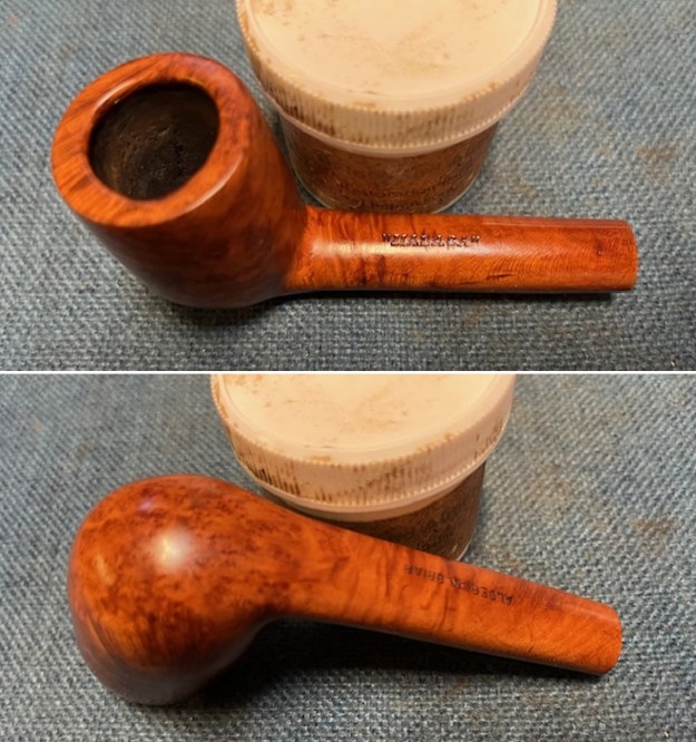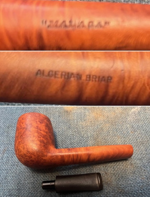 Painstaking caution is exercised in selecting flawless, perfect briar wood for the purpose of making and Curing of the “Malaga.” You can be certain of this fact, because none other than the choicest and finest select briarwood will withstand the “Malaga” Curing process. Other than the choicest quality and grain, will split wide open in the Curing vats… The Curing method renders all “Malaga” pipes, light in weight… Most all “Malaga” Senior pipes are left in their natural state; except for a skillful waxing which brings out the rich beauty of the virgin grain. No artificial polishing stain, shellac or varnishes are added. Malaga closed in 1999 after 60 years in business.