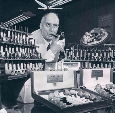 George Khoubesser (picture to the left) started Malaga Briar Pipe Company and located it in Royal Oak, Michigan in the USA in 1939. It closed its doors for the last time in 1999 after 60 years in business. I have an old Malaga Catalogue that I scanned and put on the blog (https://rebornpipes.com/2013/02/09/george-khoubesser-and-malaga-pipes/). The catalogue describes the manufacture of the pipes as follows: