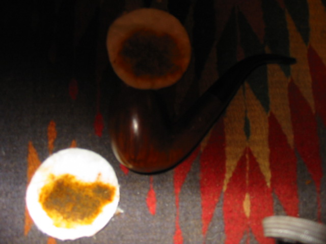 I began cleaning the internals which weren’t bad as it turns out. I cleaned the stummel with alcohol and cotton pads, removing the grime, exposing the missing fill even worse; I knew I had to deal with that as I went along. But first I began to ream the bowl while the stem soaked in an OxiClean bath.