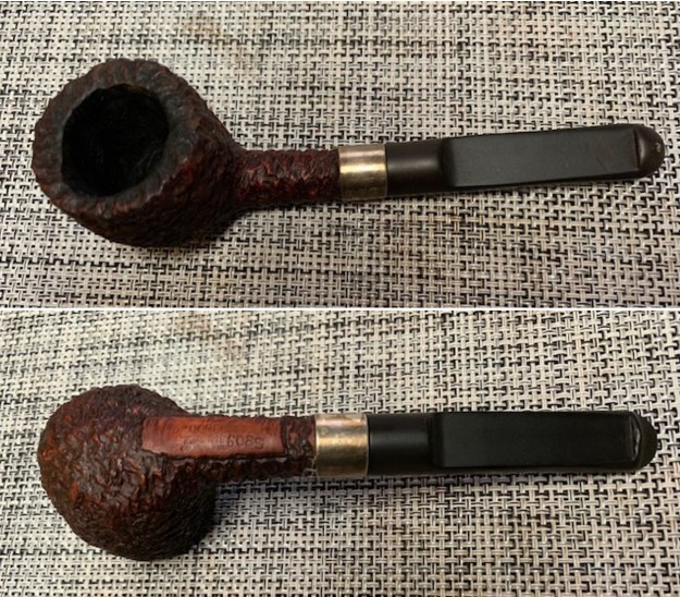 I took a photo of the stamping on the underside of the shank and the band. You can see that it is stamped as noted above. It is faint but still readable. I took the pipe apart and took a photo of the pipe. It is a good-looking pipe and has a rugged rustication around the bowl.