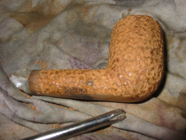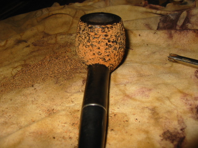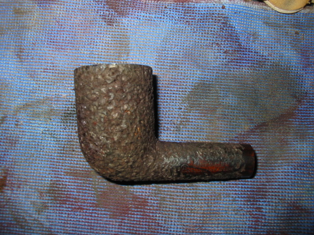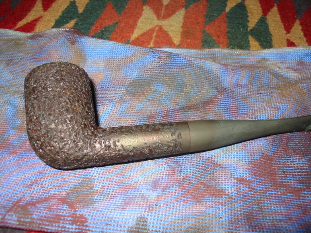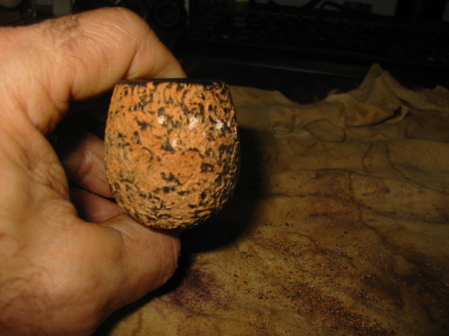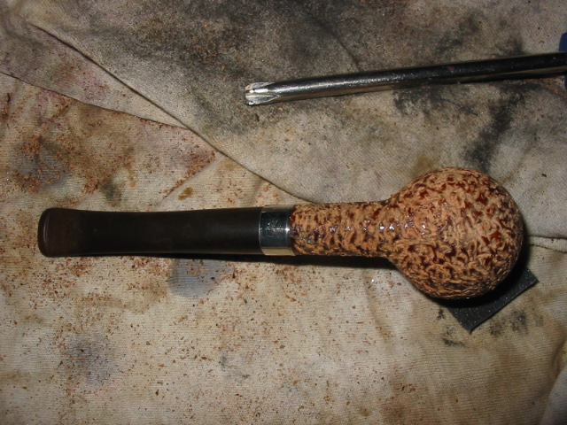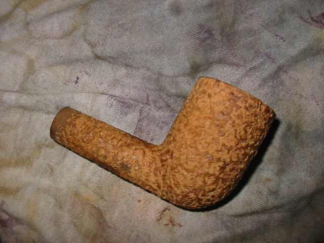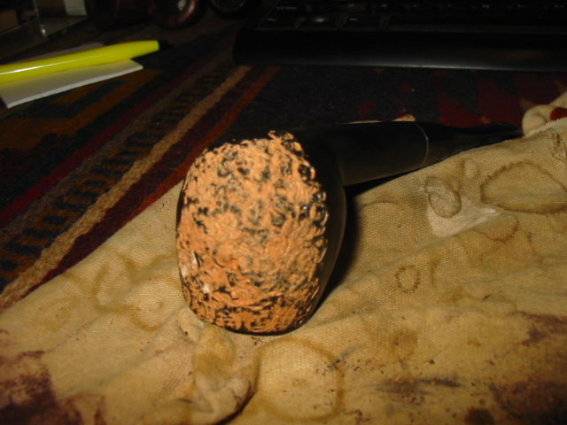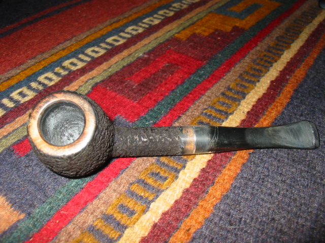 My first one is the Christmas pipe I had him make for me. The rustication is great and the shape is well done. Note the thickness of the stem from the saddle to the button and also the thick button on the end of the stem. I reworked this stem when I received it. I thinned it down, flattened it out and thinned the button as well. I worked it until it was comfortable for me.