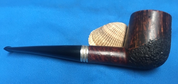 Ser Jacopo pipes is somewhat difficult, because Ser Jacopo does not generally use date codes (the exception being the Diamond Gemma series pipes, which are dated coded). Early pipes (from 1983 to 1997) featured a red coral dot on the mouthpiece, sometimes found encircled in a silver ring. This was discontinued and changed to a sterling silver letter “J”. On the Gemma series of pipes, the mouthpiece logo is a precious stone surrounded by an 18k gold ring.