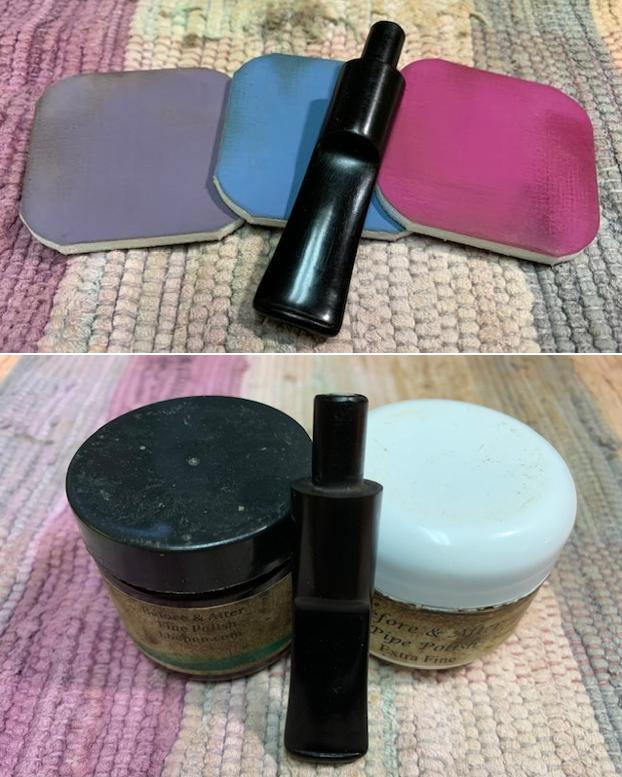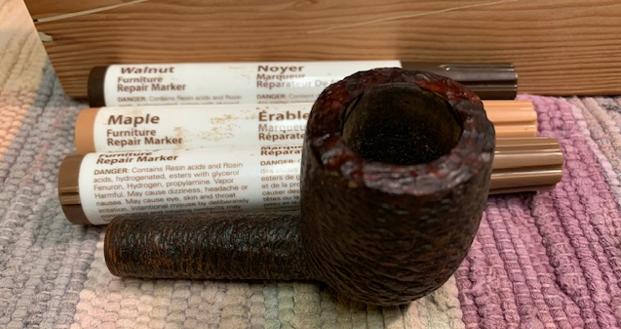 I stained the rim top with a combination of Walnut, Maple and Cherry stain pens to match the colour around the sides of the bowl and shank.