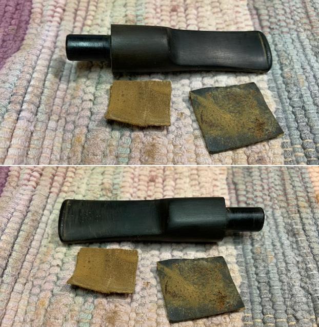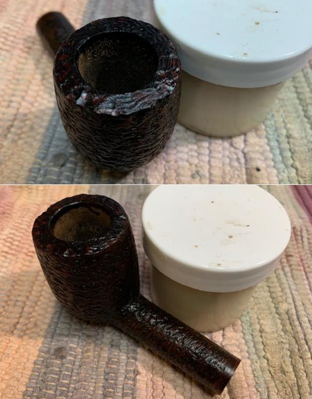 Jeff took a photo of the side of the bowl and heel showing the worn finish and what is underneath the grime and debris of time and use. It will be interesting to see what happens as the pipe is cleaned and restored.