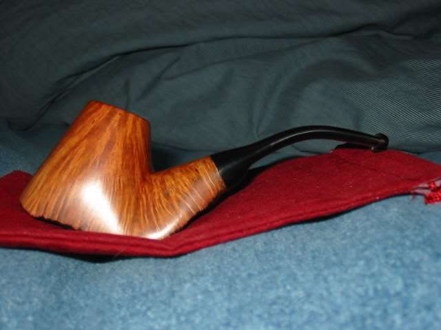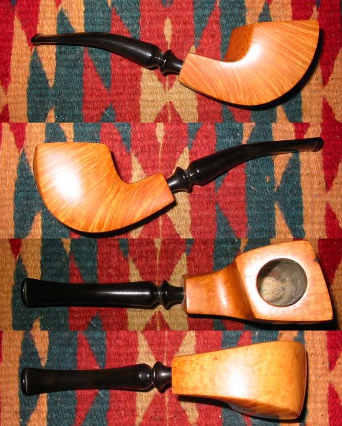 The third pipe was a small Canadian with many fills in the shank and bowl. I did a shallow rustication with the pipe and nails and then used a dark brown and medium brown stain to get the look. All three of the first pipes have a leatherlike finish to them that was achieved by sanding or buffing the highspots on the finish after rusticating.