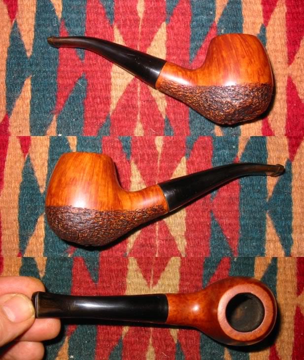 The fifth pipe pictured is another Canadian I rusticated. This one was a pipe that I finished shaping and made a stem for. The briar was bland with poor grain. It had a lot of bald spots in the briar so I decided to do a black and tan finish on it.