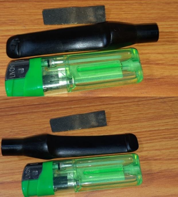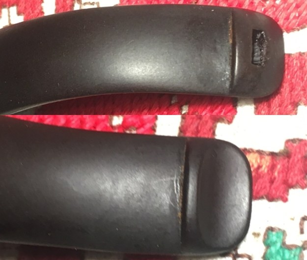 Before I moved on to sanding, I built up the tooth marks on the stem with black cyanoacrylate adhesive and let them fully cure. I then sanded them down with sandpapers to merge a bit better into the stem. I also added some nail polish to the ‘S’ on the stem.