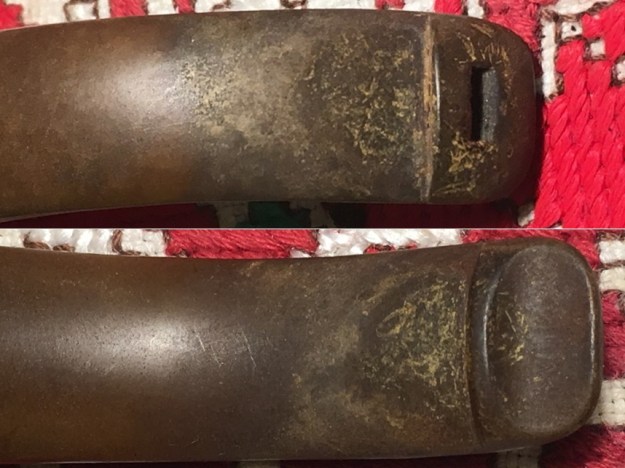 This was obviously a terrific smoker, as the wear and tear on this pipe shows. The stummel was quite dirty – both inside and out – and even appeared to have some dust-bunnies inside the bowl (not to mention all the cake). The finish was well worn and would need to be addressed. The nickel cap had some mess on it too. The stem, however, was from another planet. Have you ever seen such oxidation on a pipe stem? In fact, my wife asked me if the stem was actually meant to be brown. “No” was my emphatic answer! Aside from that, the stem had some tooth marks and nicks. I could tell that this stem was going to be a bear to deal with.