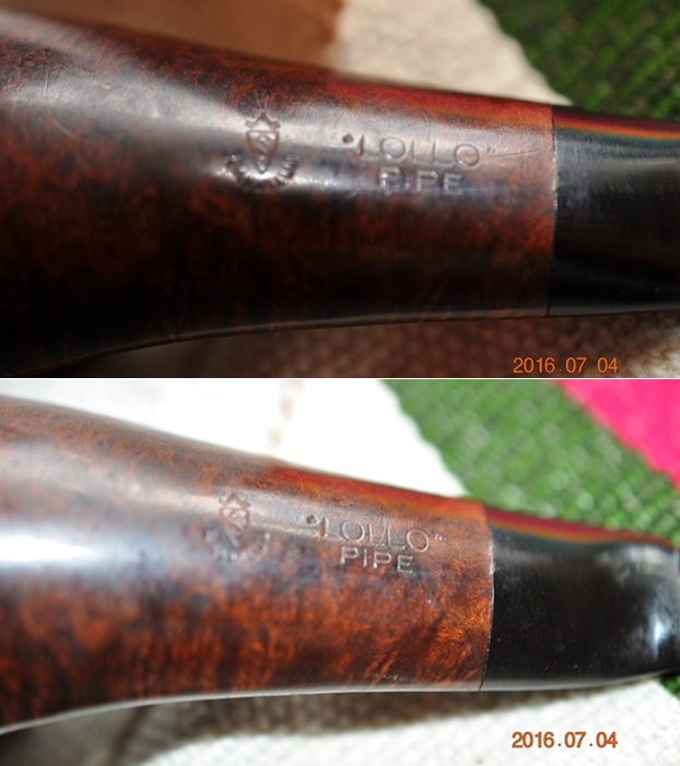 The next pipe on the work table is one that Jeff picked up on eBay in 2016 from San Francisco, California, USA. That means that it has been sitting here for over 4 years and I am just now getting to work on it. This seems to be the story of my life these days. I am trying to work through the large backlog of pipes that I have sitting in boxes in my workshop/office and try to catch up a bit. It is an interesting pocket style pipe that has a mix of grains around the bowl and shank that really are quite nice. The bowl has a rich reddish brown colour combination that highlights grain. It bears a heavy varnish coat that I will want to remove. The pipe has some grime ground into the surface of the smooth finish and on the rim top. This pipe is stamped on the underside of the shank and has the Savinelli “S” shield logo with Savinelli stamped in an arch underneath the shield. That is followed by the stamping ‘LOLLO’ [over] Pipe. There is a thin cake in the bowl, but the top and inner edge of the bowl looks very good. The stubby vulcanite stem was oxidized, calcified and there were some light tooth marks and chatter on both sides near the button. The pipe looks to be in good condition under the grime. Jeff took photos of the pipe before he started his cleanup.