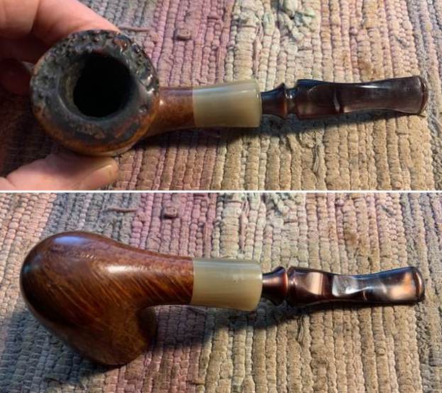 Well, the usual cleaning procedures were in order for this pipe. I started on the stem by wiping it down with some Murphy’s on a cotton round. Then, I cleaned out the insides of the stem with pipe cleaners and lemon-oil isopropyl alcohol.