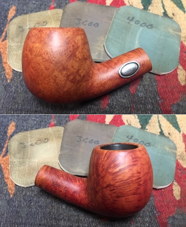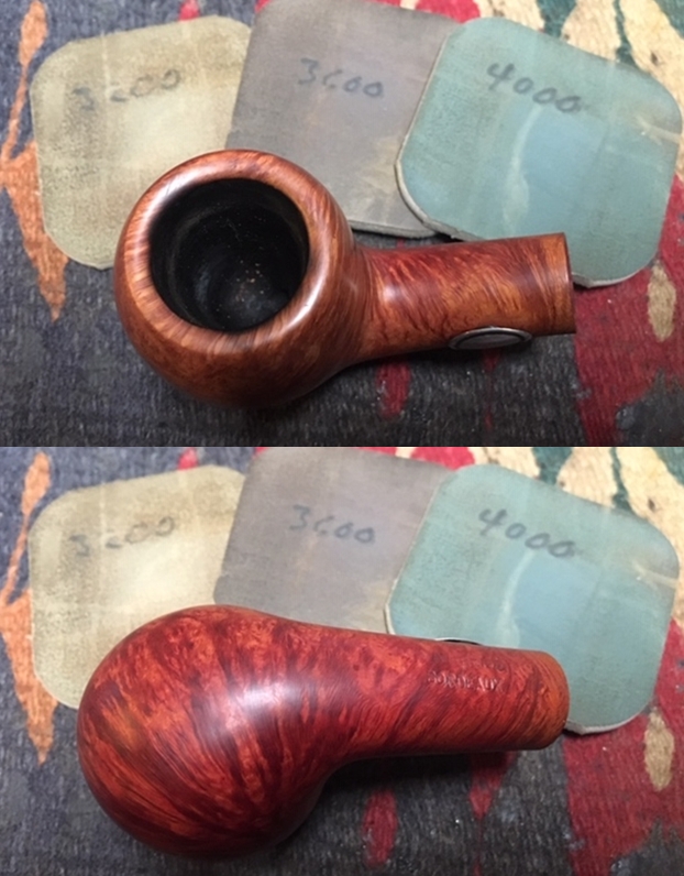 I wet sanded the tooth chatter on both sides of the stem with 1500 -12000 grit micromesh pads to polish it. I wiped it down with Obsidian Oil on a cloth after each sanding pad. I finished polishing the stem with Before & After Pipe Polish – both Fine and Extra Fine polishes. I rubbed it down with Briarville’s No Oxy Oil as a final preservative measure to protect the stem.