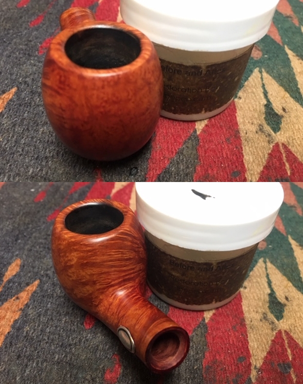 I worked some Before & After Restoration Balm into the briar with my finger tips and a horsehair shoe brush. The product is a great addition to the restoration work. It enlivens, enriches and protects the briar while giving it a deep glow. It is a product I use on every pipe I work on.