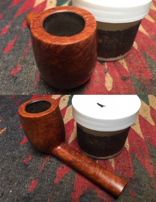 I wiped the bowl exterior down with alcohol on paper towels to remove the grime and then scrubbed the interior of the bowl shank and stem with pipe cleaners, cotton swabs and alcohol to remove the tars and oils.