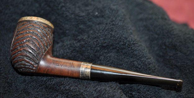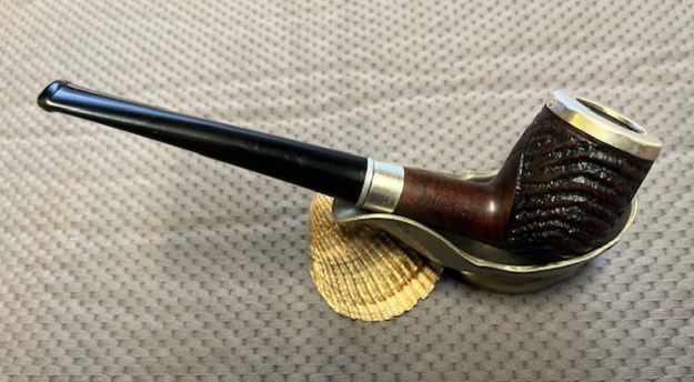 Once again, I am at the part of the restoration that I always look forward to – the moment when all the pieces are put back together. I put the Benaderet’s Coral 135 Billiard and new acrylic stem back together and buffed the bowl with Blue Diamond. I buffed the stem with a heavier touch with Blue Diamond on the buffing wheel. I gave the bowl and the stem multiple coats of carnauba wax. I buffed the pipe with a clean buffing pad to raise the shine. I hand buffed it with a microfiber cloth to deepen the shine. It is fun to see what the polished bowl looks like with the polished sandblast finish and thin brass band. The black acrylic stem stands out as a shiny black contrast to the colours of the bowl. The reddish brown stain on the Benaderet’s Coral Billiard looks absolutely great. It is nice to know that it has a west coast tie to the San Francisco area and a long-gone pipe shop. It must have been a fine smoking pipe judging from the condition it was when we received it. Have a look at it in the photos below. The dimensions are Length: 6 ½ inches, Height: 2 inches, Outside diameter of the bowl: 1 ¼ inches, Chamber diameter: ¾ of an inch. The weight of the pipe is 1.41 ounces/41 grams. This is one that will go on the British Pipemakers section of the rebornpipes online store shortly. Thanks to each of you who are reading this blog. Remember we are not pipe owners; we are pipemen and women who hold our pipes in trust until they pass on into the trust of the next generation.