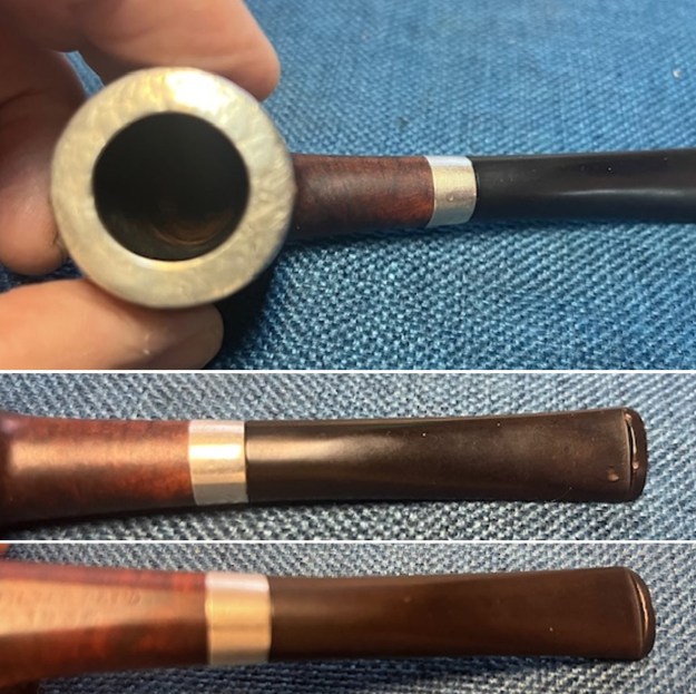 I stained the rim edges and top with a Walnut stain pen to match the rest of the bowl and shank colour. It looked very good.