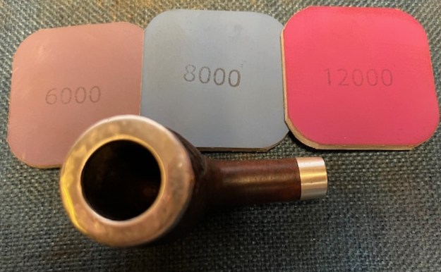 I polished the stem with micromesh sanding pads – wet sanding with 1500-12000 grit sanding pads. I wiped it down after each sanding pad with some Obsidian Oil. I finished polishing it with Before & After Pipe Stem Polish – both Fine and Extra Fine and buffed it off with a cotton cloth. I wiped it down with Obsidian Oil to protect the stem and slow down the oxidation.