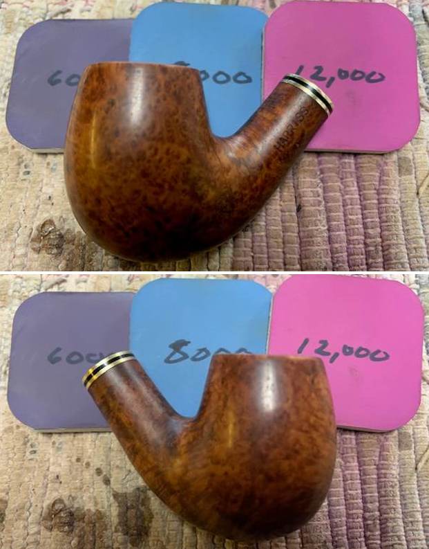 I polished the rim top and the briar with micromesh sanding pads – dry sanding with 1500-12000 grit pads. I wiped the bowl down with a damp cloth after each sanding pad to remove the dust and debris. The rim top polished out and matched the oil cured look of the bowl and shank.
