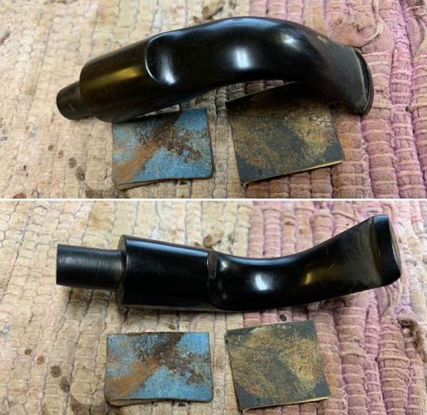 I cleaned the mortise and airways in the shank and stem with cotton swabs, pipe cleaners and isopropyl alcohol to remove the debris and tars from my smoking. You can see that it was not too bad as I tend to keep my pipes clean.