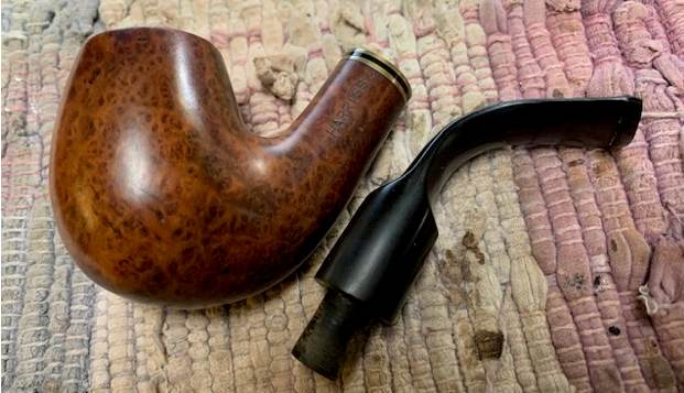 I am excited to put the final touches on the Harriss 863 Bent Billiard. I put the pipe back together and buffed the stem with Blue Diamond on the buffing wheel. I gave the bowl and the stem multiple coats of carnauba wax. I hand buffed the pipe with a clean buffing pad to raise the shine. It is fun to see what the polished bowl looks like with the beautiful grain, the triple sandwiched brass and black acrylic band on the shank end and the polished vulcanite saddle stem. This smooth Harriss Bent Billiard is great looking and the pipe feels great in my hand. It is light and well balanced. Have a look at it with the photos below. The dimensions are Length: 5 inches, Height: 2 inches, Outside diameter of the bowl: 1 1/8 inches, Chamber diameter: ¾ of an inch. The weight of the pipe is 52 grams/1.80 ounces. It is a beautiful pipe that I will soon be putting on the rebornpipes store in the English Pipe Makers Section. If you are interested in adding it to your collection send me an email or a message. Thanks for walking through the restoration with me as I worked over this pipe. Thanks to each of you who are reading this blog.