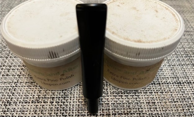 I used the sanding pads I purchased recently – 320-3500 grit regular pads to smooth out the finish and remove the light tooth and chatter marks in the stem. I wiped the stem down with Obsidian Oil to finish the preliminary work after the 3500 grit pad.