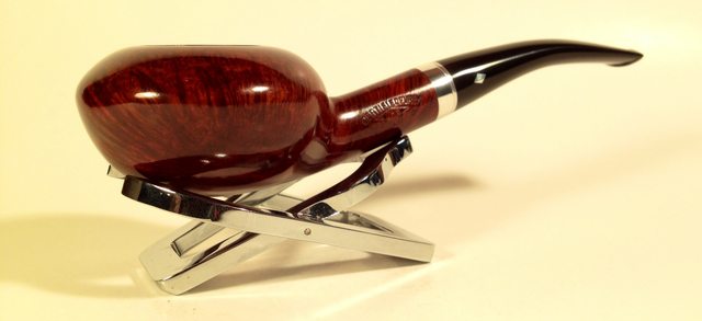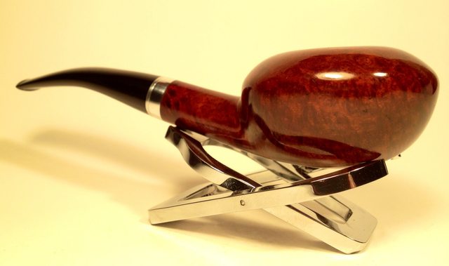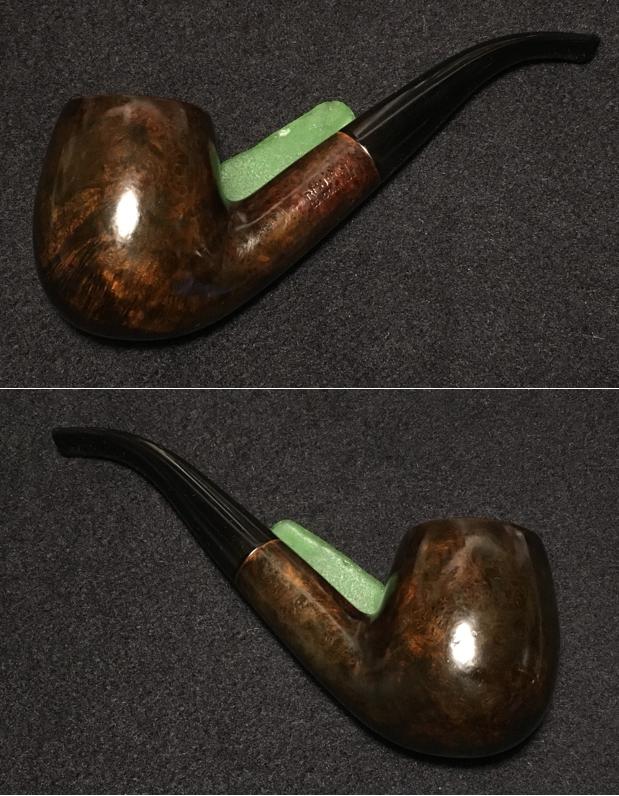 To remove the compound dust, I hand buff the stummel with a flannel cloth. After mounting the Dremel with a cotton cloth wheel and increasing the speed to 2, one notch over the slowest, I apply several coats of carnauba wax to the stummel and reattached stem. I follow this with a rigorous hand buffing with a micromesh cloth. When I experimented by adding black dye to the dark brown I didn’t anticipate the unique hue that would result. The briar grain veins seem to have latched on to the black and the lighter grains came out with a golden/copper kettle blend that is striking – very interesting and attractive. If this REJECT – LONDON MADE is a product of the W. H. Carrington Co., I cannot say why it received this factory stamp. For those who like huge pipes that fill the hand, this big boy, bent billiard fits the bill and needs a new steward! All the profits of pipes I sell help the Daughters of Bulgaria, an organization we work with that helps women and children who have been trafficked and sexually exploited. If you’re interested in this REJECT, hop over to my blog site, The Pipe Steward. Thanks for joining me!
