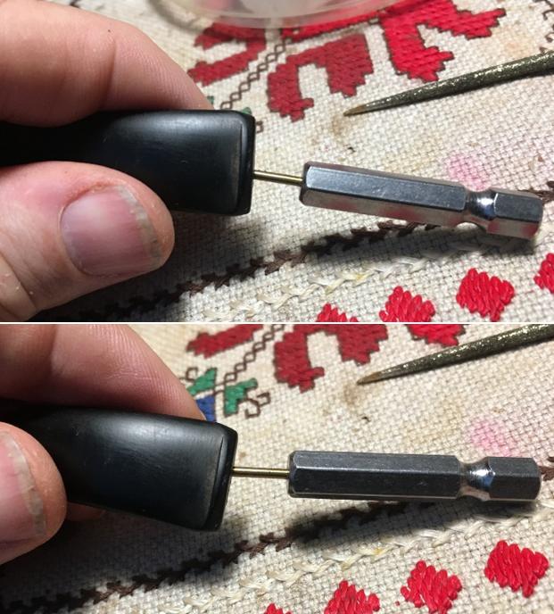 I now clean the internals of the stem using pipe cleaners dipped in isopropyl 95%. The stem is clean but I find that even though I’ve re-bent the stem the pipe cleaners will not move through the bend of the stem. I decide to open the slot area with a round pointed needle file moving it back and forth in the slot. After this, I take a drill bit, smaller than the slot opening, and insert it into the airway rotating it against the edges of the airway hoping to expand the internal airway area as it enters the slot. This seems to help yet the bend is still tight on the pipe cleaners, but they are passing through. The stem is clean. The pictures show the progress.