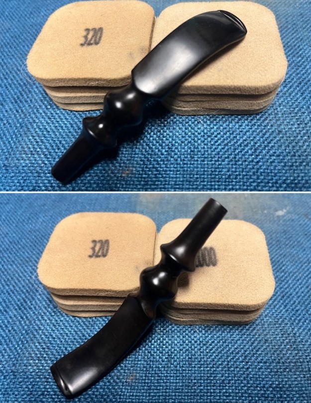 I set the bowl aside and worked on the stem. I sanded the oxidation and the tooth marks and chatter with 220 grit sandpaper. I was able to remove all of the tooth damage on the stem and the majority of the oxidation.