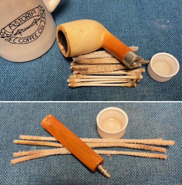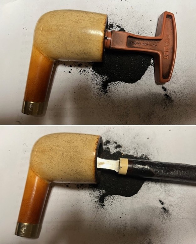 I cleaned out the inside of the shank and the airway in the stem with alcohol, cotton swabs and both bristle and regular pipe cleaners.