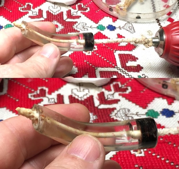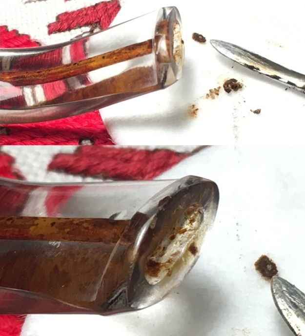 I cleaned out the shank, the airway and the deep mortise with alcohol, cotton swabs, hard bristle and soft bristle pipe cleaners. It was a very dirty pipe which just meant that Donna’s Dad had really enjoyed and used this pipe. I cleaned the inside of the aluminum tenon and the airway in the stem with alcohol, cotton swabs and pipe cleaners in the same way as I did the shank. It also was very dirty.