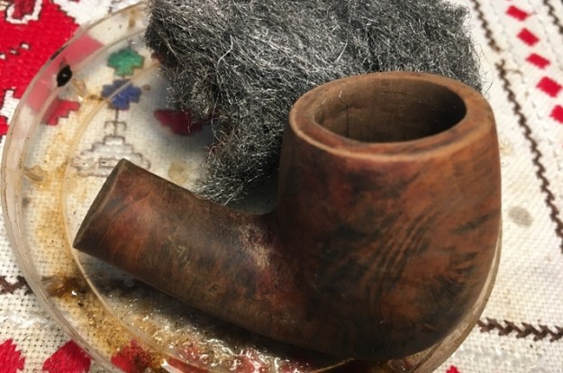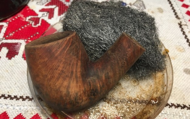 I scrubbed off the surface of the bowl and shank with acetone and cotton pads. The surface was coated with a shiny varnish coat. I wanted it to be gone so that I could see the briar underneath. It looked very good once the varnish coat was gone.