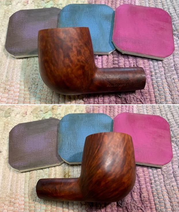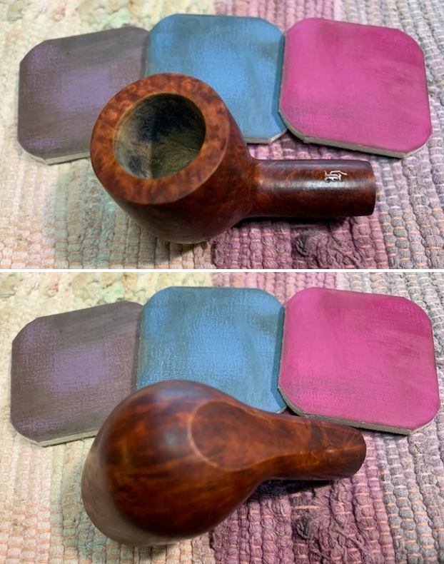 When I began this project, I had no idea what I would be able to do to improve the presentation of the carved sailor’s face. I wanted to retain the rustic, rough feel but bring out more of the grain and contours of the face carving. This is my first restoration of a carved figure and I’m very pleased with the huge difference in the quality of the carved presentation by uncovering it or freeing it from the thick candy apple glaze that entrapped it. The minute appearances of briar grain have been teased out and now highlight the various facial components of the carving in a satisfying and attractive way. In my view, the restoration took the Carved Bearded Sailor from a trinket-like feel to an expression of artistic beauty and creativity. I started calling the bearded sailor, ‘Ole Crusty’, during the process of getting to know him better and helping him come out! I think the name fits the image of the old bearded sailor who was weathered by life, that the carver was seeking to capture and bring to life in this pipe. Tina commissioned this pipe for her brother, a Coast Guard man, and I trust that she and he will like ‘Ole Crusty’ as well I do! Tina commissioned this pipe from the For “Pipe Dreamers” Only! collection and will have the first opportunity to acquire ‘Ole Crusty’ from The Pipe Steward Store. This pipe benefits the Daughters of Bulgaria – women and girls who have been trafficked and sexually exploited. Thanks for joining me! I begin with a Before & After of Ole Crusty: