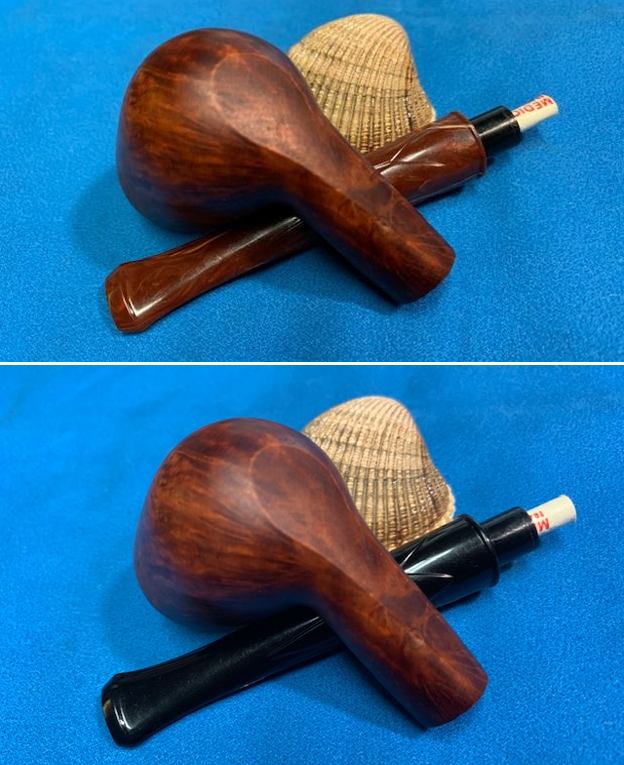 After several hours, I take the Sailor’s stem out and let the Before & After Deoxidizer drain off the stem. I then run another pipe cleaner wetted with alcohol through the stem’s airway to clean it of the Deoxidizer. I also wipe off the raised oxidation with a cotton pad wetted with isopropyl 95%. The Deoxidizer does a good job.