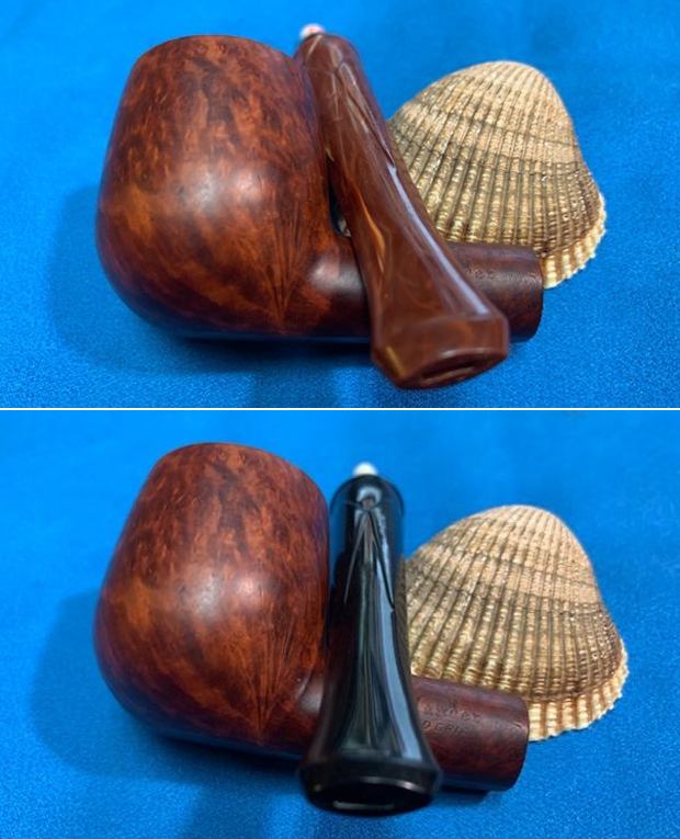 I use 240 grade paper to sand out the minor bit and button issues. I also sand the entire stem to remove the roughness. To avoid shouldering the stem shank facing, I use a plastic disk on the end to butt up against as I sand.