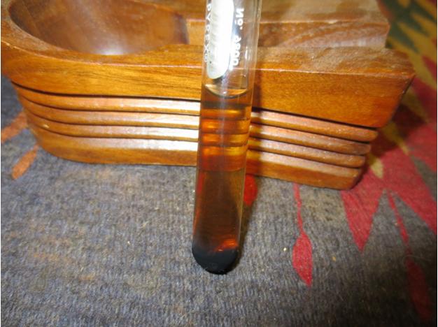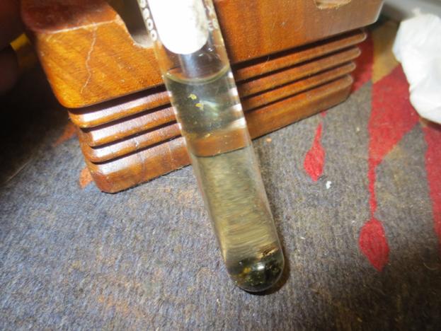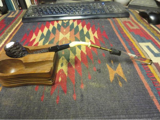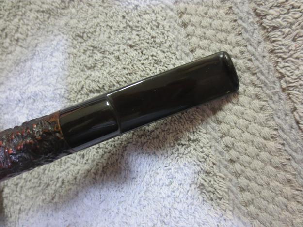 The tenon was undersized, making the bit spin, and so I added a small layer of Black Super Glue. After it dried, I retorted the pipe – again violating established practice by boiling the Everclear through the Lucite bit and into the chamber, but also again with complete success.