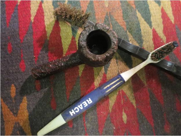 The first order of business was scooping out old tobacco that had the unusual appearance of being better suited for cigarettes.