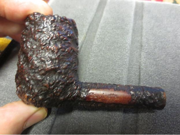 By way of an example of a success story, I found myself unable to make out any nomenclature on the pipe this blog concerns other than Made in London above England, and below that what looked like 140. I went on a hunch that it might be a Comoy’s and consulted a meticulous list of that maker’s shape numbers. They skipped from 133 to 158. At this early, eyes-on exam stage of the refurbish, I was not even convinced the first digit of the shape was a 1 – it might have been a mere scratch – and so I looked for just 40. Both that and 41 were missing. Thus, for the sake of pure curiosity, I made my way all the way up through the 800s and discovered that Comoy’s has a 340 and a 440, both straight and with an M denoting Medium (the former a billiard and the latter a Rhodesian, FYI).