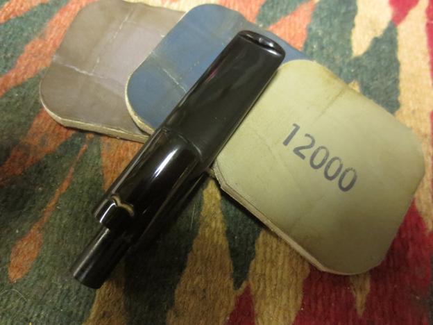 After applying Fiebing’s medium brown boot conditioner and flaming the alcohol out of it, I progressed from 3600-12000 micromesh before achieving the lightness I wanted with superfine “0000” steel wool.