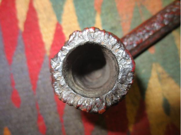 I ran a few Everclear-soaked cleaners through the shank and bit before giving most of the stummel a nice, long soak in alcohol, careful to an almost neurotic state not to leave the shank submerged. I will never forget the GBD Prestige debacle in which I obliterated the last remaining revenant-like nomenclature, and was determined to avoid the same mistake. I made periodic turns of the bowl in the Everclear to keep the stripping of old finish even. I have heard that using strong alcohol to clean Lucite air holes can lead to severe damage to the polymethyl methacrylate plastic (the same as Perspex). Perhaps that is so, but in my experience a quick job of it is safe and effective. No harm was done to this bit in its refurbish.