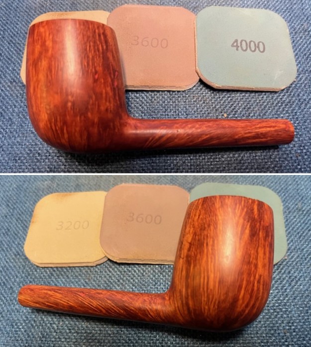 I polished the bowl sides, bevelled rim top and the inner edge of the rim with micromesh sanding pads – dry sanding with 1500-12000 grit sanding pads. I wiped it down after each sanding pad to remove the sanding debris. The pipe looked much improved at this point.