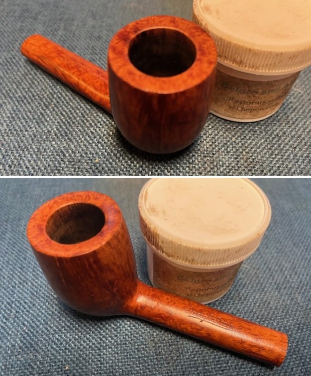 I rubbed the bowl down with Before & After Restoration Balm working it into the briar with my fingertips to clean, enliven and protect it. I let the balm sit for 15 minutes and then buffed with a cotton cloth to raise the shine. Mark Hoover’s Balm is a product that I have come to appreciate and one I use on every pipe I have been working on.