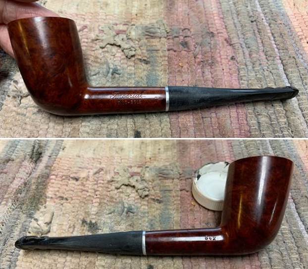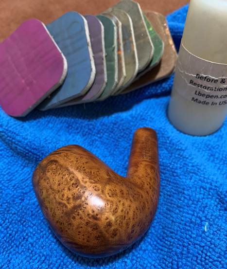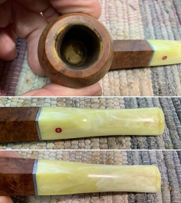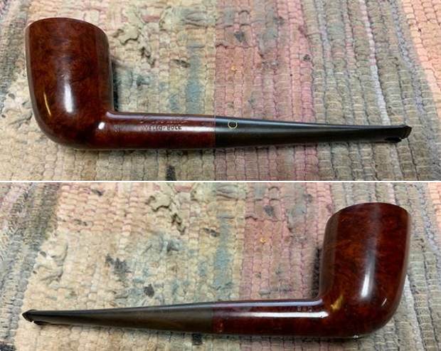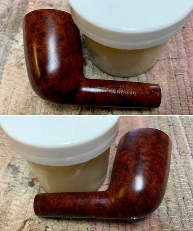 Wow. That was quite the restoration job! This Airograte Yello-Bole looks so much better and I am happy to send it back to its owner. It was a lot of work, but I learned a lot and I am pleased with the results. The approximate dimensions of the pipe are as follows: length 5⅔ in. (144 mm); height 1⅝ in. (41 mm); bowl diameter 1⅜ in. (36 mm); chamber diameter ⅞ in. (21 mm). The weight of the pipe is 1¼ oz. (37 g). I hope you enjoyed reading the story of this pipe’s restoration as much as I enjoyed restoring it. If you are interested in more of my work, please follow me here on Steve’s website or send me an email at kenneth@knightsofthepipe.com. Thank you very much for reading and, as always, I welcome and encourage your comments.
