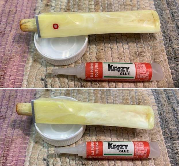 I decided to repair the tiny cracks in the briar next. This was initially straightforward enough: I was able to fill them with cyanoacrylate adhesive. However, it ended up being a bit tricky because I didn’t want to risk affecting the bowl threads by gumming them up with glue! I acted carefully and the repairs worked out perfectly.