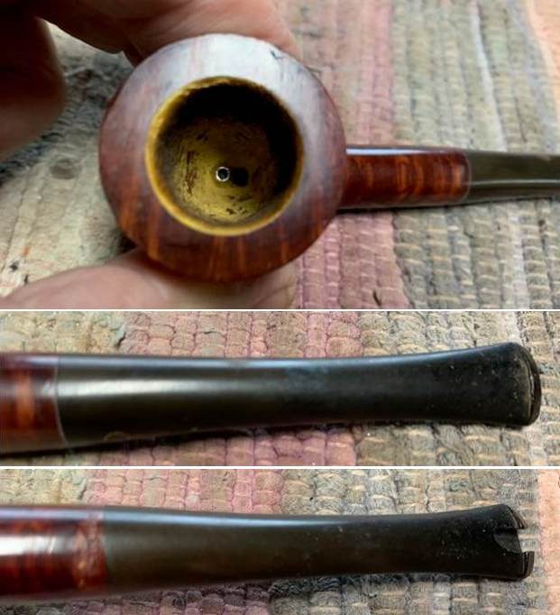 A gentleman recently contacted me to ask if I would restore his Airograte Yello-Bole. I was happy to take on the project, as it was an interesting pipe – and it looked like it could use some TLC. In the end, the pipe turned out very well, but it was a very labour-intensive cleaning and restoration. Take a close look at the before and after photos – I think they speak for themselves. This pipe has had a hard life, but it must have been greatly loved. This restoration made the pipe look so much better, but the battle scars of the past will always be with it – and so they should be! They are part of its history.