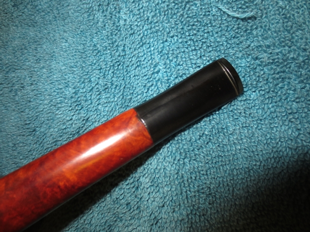 In a difficult choice, I decided to re-stain the briar with a medium as opposed to the original light brown color. I applied Lincoln boot stain and flamed the alcohol out before removing the char with 2400 micromesh and smoothing it out using 3600.